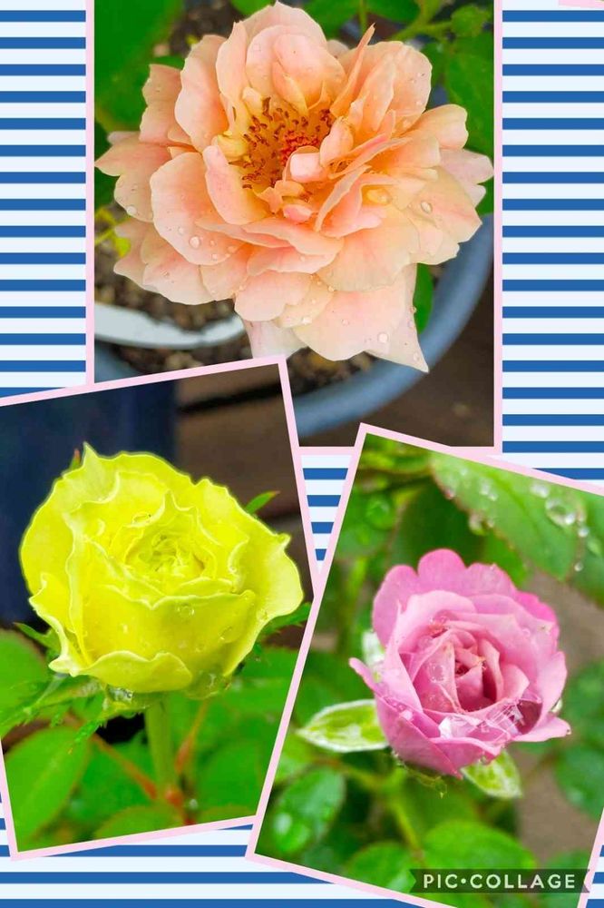 ミニバラさんたちも、ちょっと寂しそうだけど、雨粒がいい感じ◝(⑅•ᴗ•⑅)◜..°♡