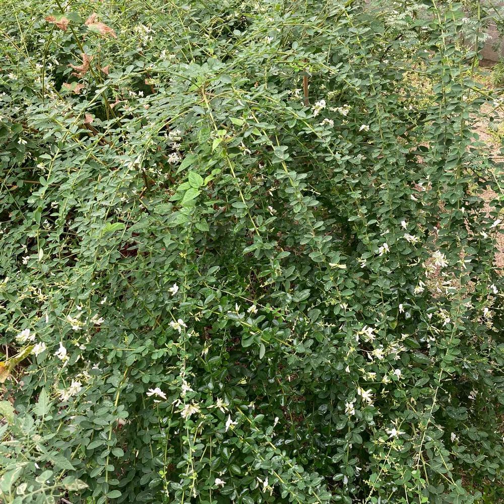 シロバナハギ。冬に地表10センチくらいで刈ったのに、今年もすくすく育って直径2mを超えました。イタヤカエデやアカシアを飲み込んで花を咲かせています。