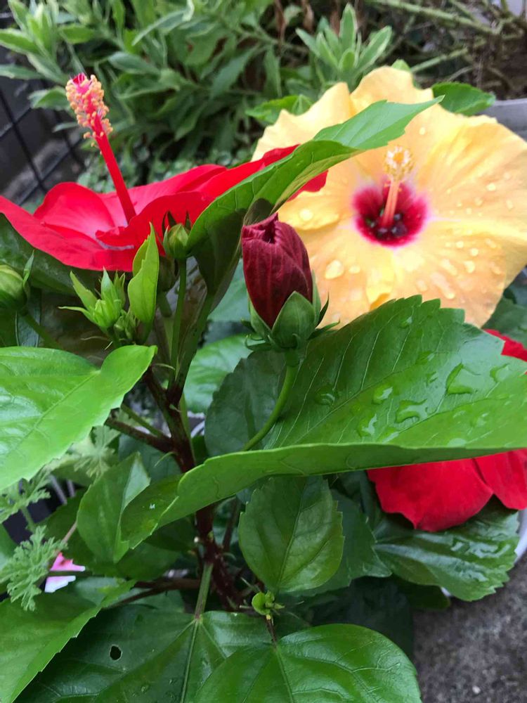 ハイビスカス🌺の蕾が、あと少しで開きそうです。真っ赤とビタミンカラー
