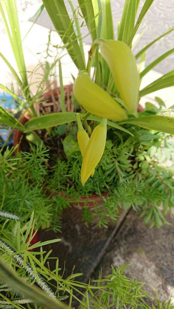 今年は、3週間早く、咲きそうです。黄色のシンビジウムを小さくしたような、花です。とても良い香りです😊