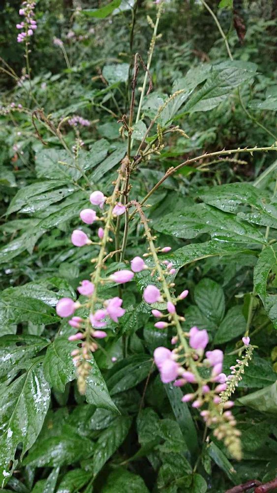 藪の中で茎を伸ばし咲いていました。葉は写真に写っているとおり。花はまばらなトラノオみたいな感じでした。