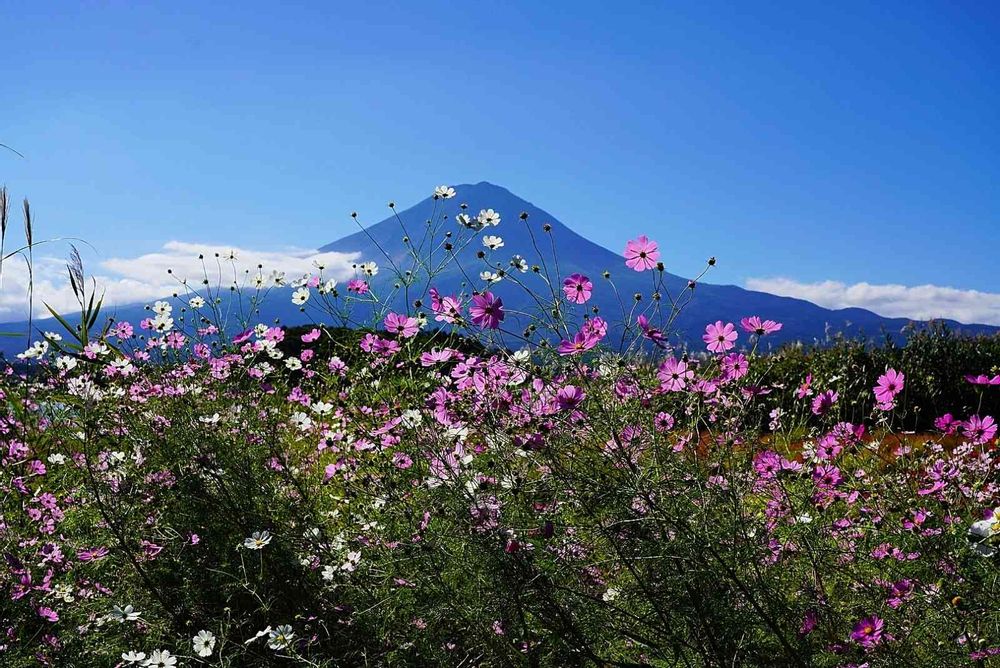 かわいいコスモスですね!バック背景に富士山はすごい。