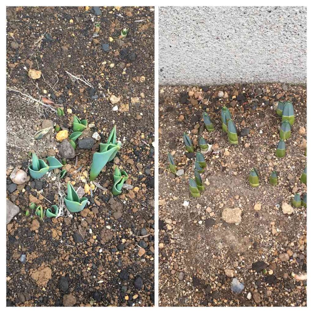 チューリップ?の芽🌱がズンズン出てきています〜👏
