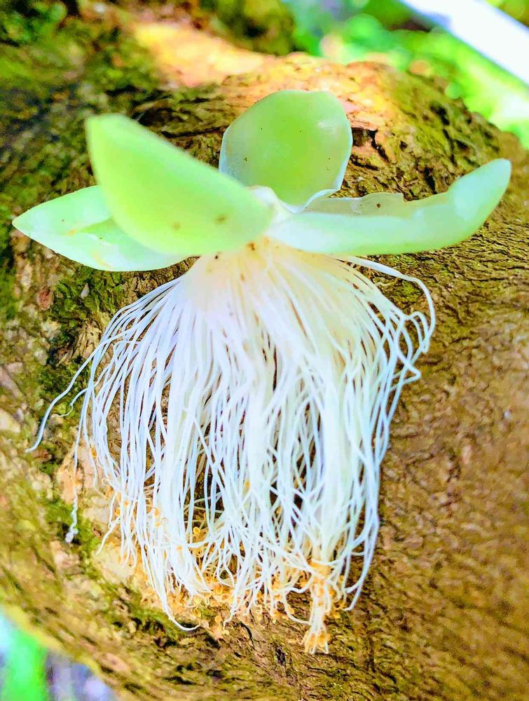 このこは、大きな植物園の大温室の中の木の枝に〜落ちて載っていた感じが、神秘的でした~♡触ったら〜クラゲのように動き出しそうな位、綺麗でした💚