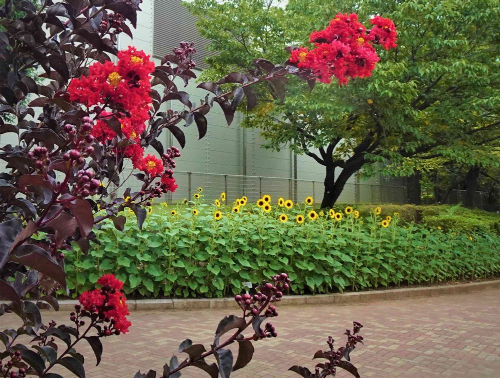 お出かけ先,サルスベリ,ヒマワリの投稿画像