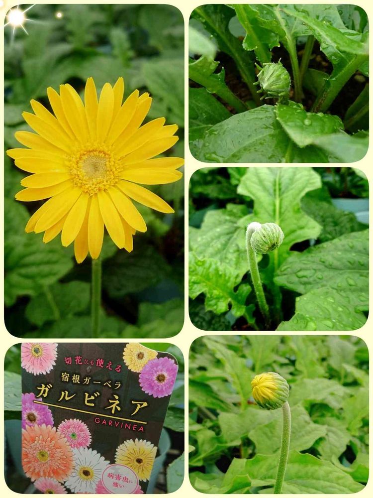 7月中旬にホウレン草のような苗を植え込みしてからひと月半、本日一番乗りで開花したガーベラ✨早熟なイエローさん🏵️
