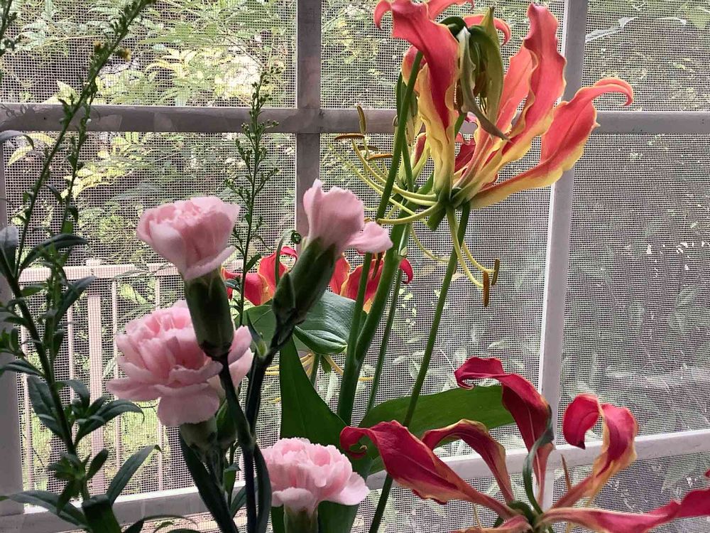 夜空ドロップさんの窓辺,カーネーション,グロリオサの投稿画像