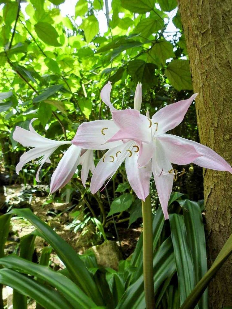 昨日に続き公園⛲内の温室の片隅で綺麗に咲いていた🌺🤎インドハマユウの花🌺🤎