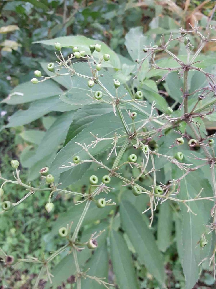草の中に葉っぱはでかく、粒々の実をみつけました。何でしょう。ソクズと教えていただきました。
