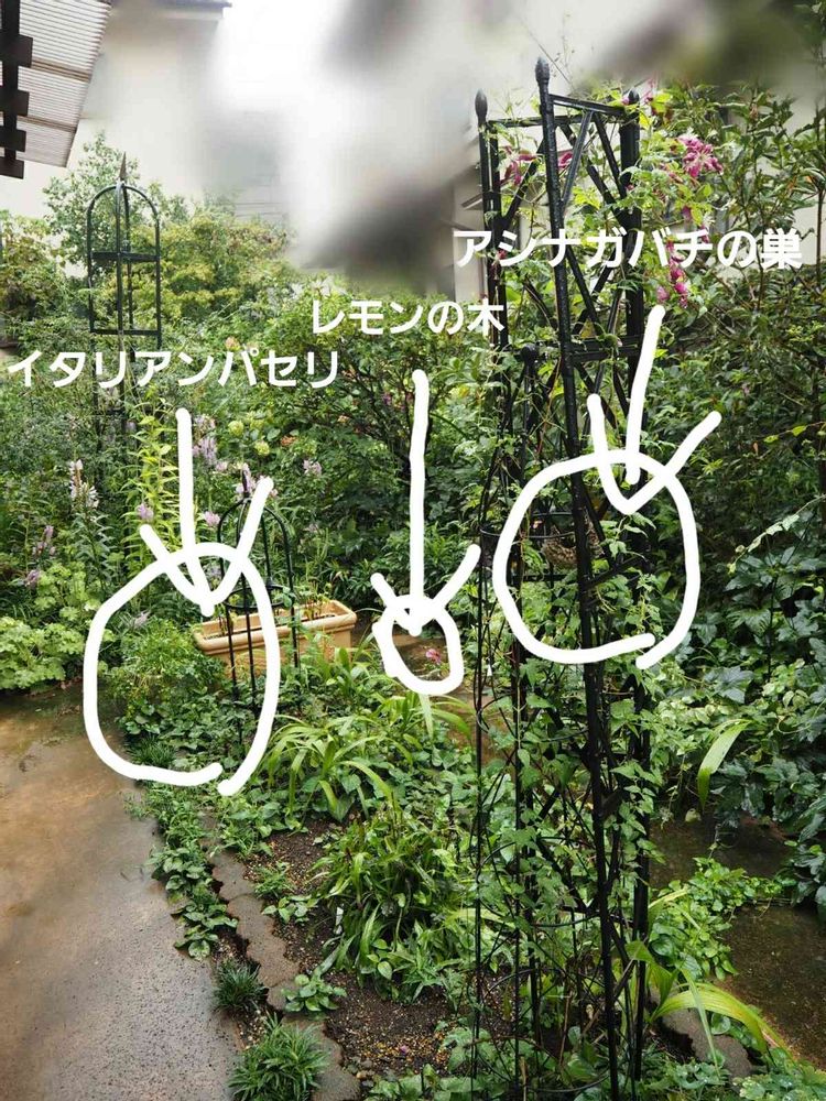 弟子は「アシナガバチはイタリアンパセリが嫌いなのではないか?昆虫が嫌う植物ってあるし」と仮定したら、GSの交流で「イタリアンパセリでも狩られるみたい」と教えてもらった