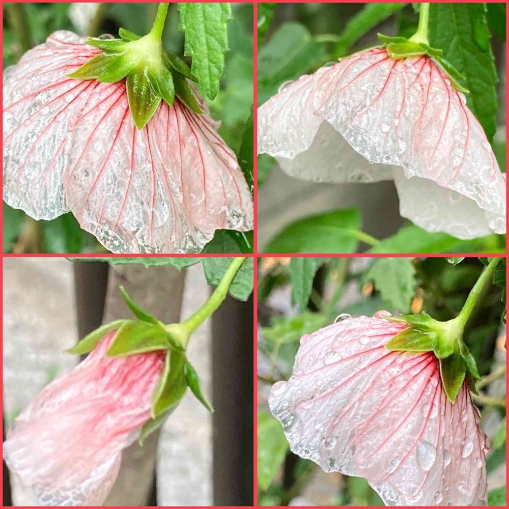 雨上がりの高砂芙蓉です。赤いスジがハッキリして素敵な姿です?