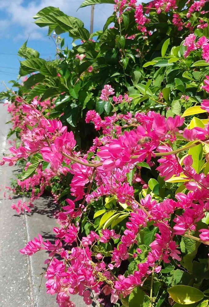 このピンクのカズラも元気そうにスクスク育つて生け垣が明るい💗💗💗💕💕💕