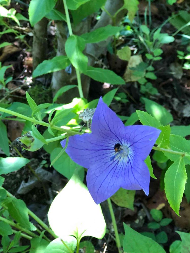 植物園で咲いていた桔梗です。よ〜く見たらお花の真ん中に虫さんがお食事中だったようです😊