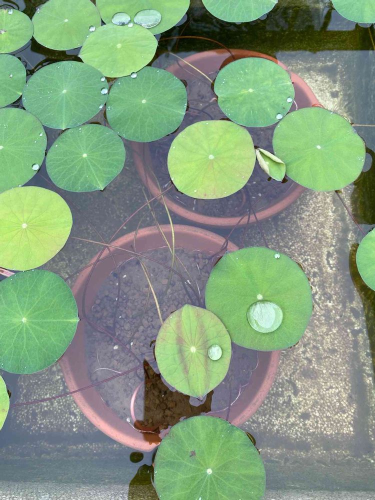 8月14日に、芽が出てる状態でお迎えした茶碗蓮6本。あっという間に葉がたくさん出ましたが、寒くなるまでにお花咲くかな〜。
