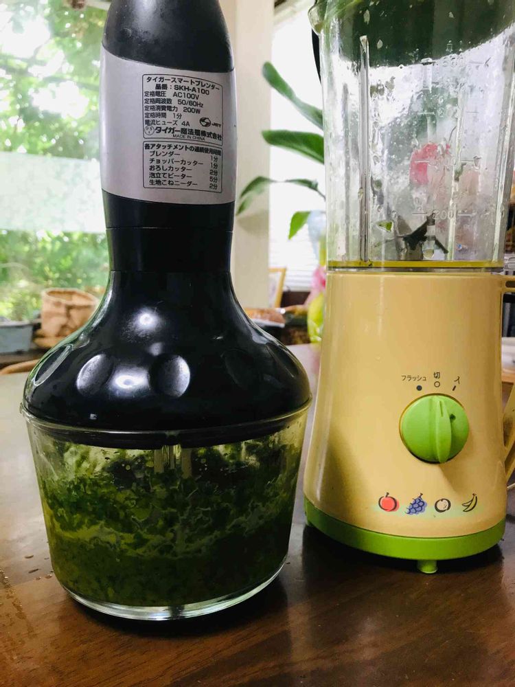 バジルソース作りを昭和のミキサー初めてました‼️