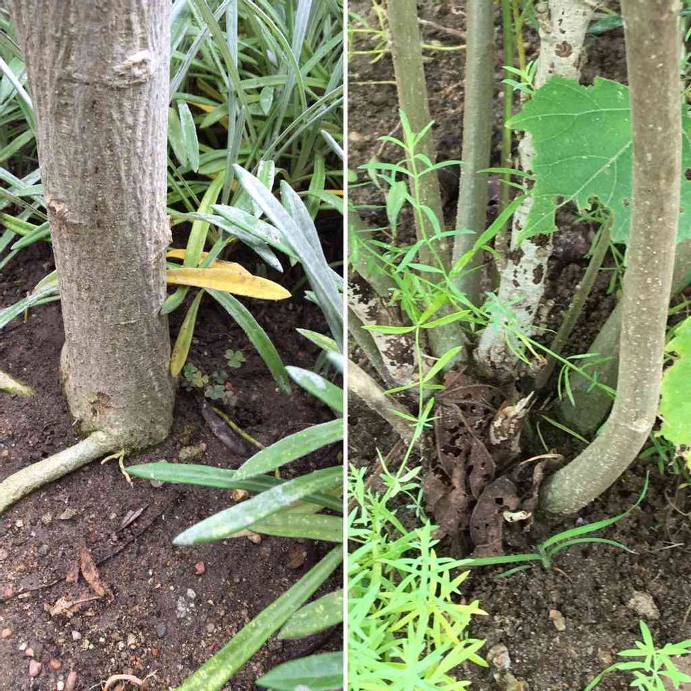 先程 投稿した、よく似たアオイ科のお花の根元は、ちょっと違っています。