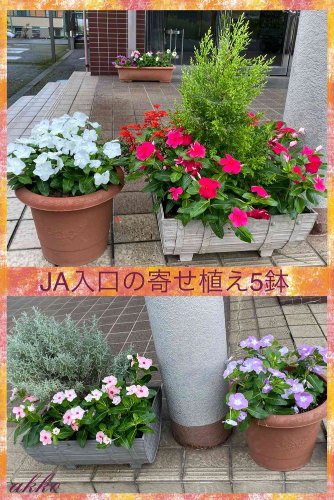 JA足柄支店の入口に、ニチニチ草を寄せ植えしました