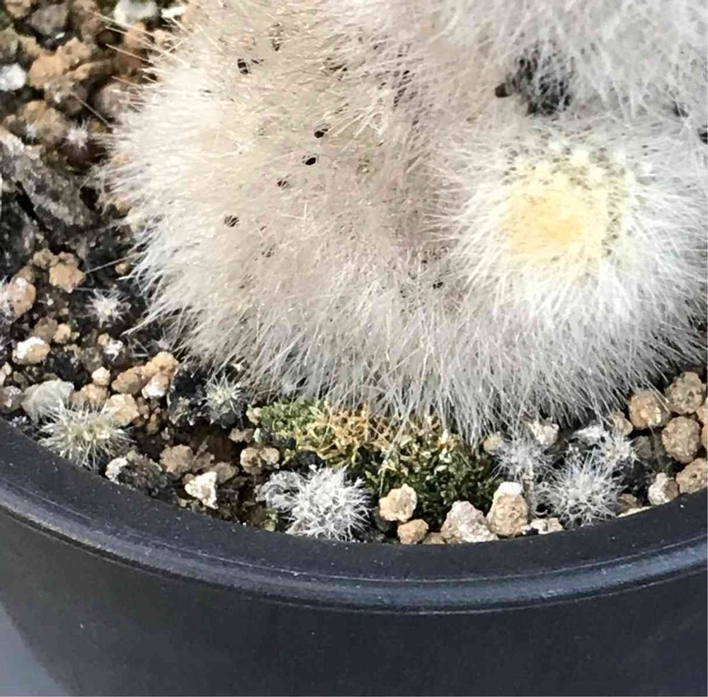 サボテンに黒く着いてるのが種なのですが、いつの間にか生まれてました😊