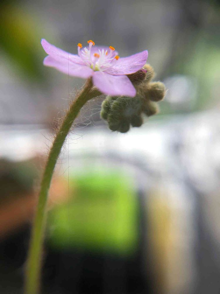 モウセンゴケのお花ピンクですごく可愛いですね🥰はじめてみました💓💓横に出ているのが何か気になります🤔