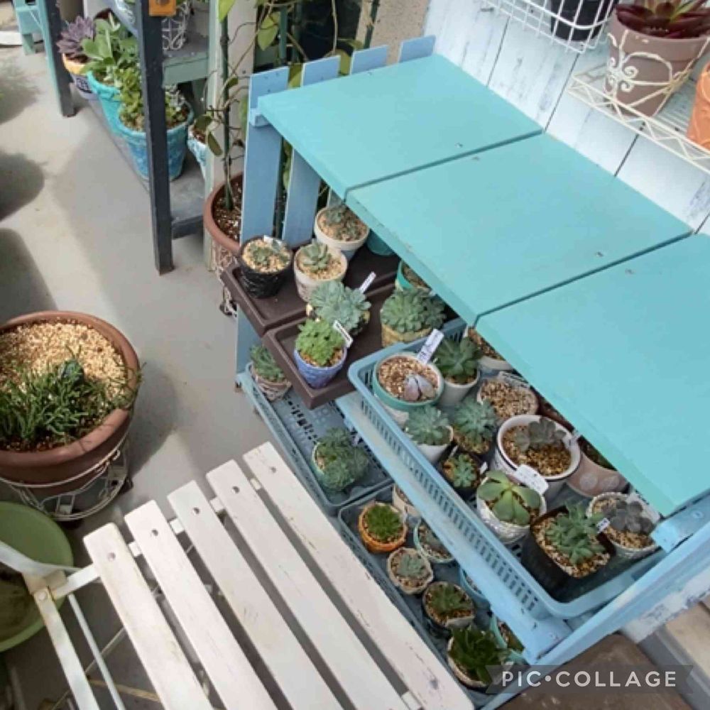 今日はベランダに出て、多肉棚の中段に板をネジ打ちして、作業台を作りました🙋♀️