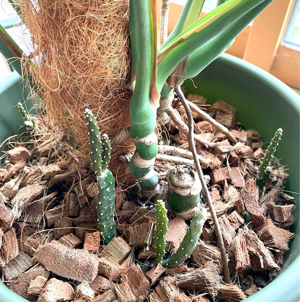ポロリしてたのをとりあえずモンステラの鉢にポイポイしてたら、ここでもどうしようもないことに😫