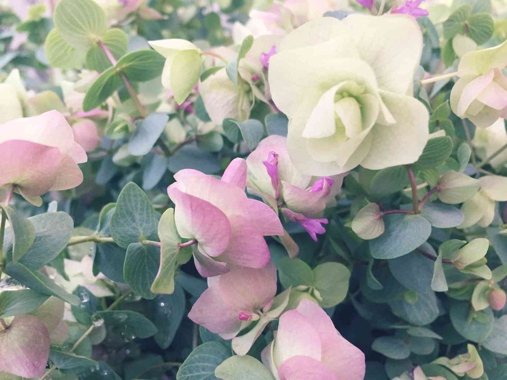 白やピンクに色づいている花みたいなのは苞で小さな濃い色の子が花になります。