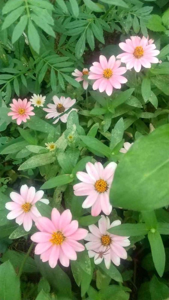 花壇の奥のピンクの可愛いジニア🌿🌸💮🌿💮🌸🌿🌸💮🌿💮🌸🌿
