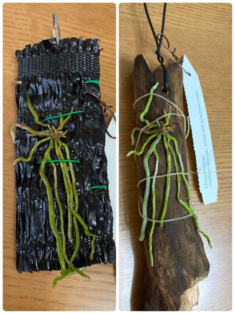 shinoさんのChiloschista sp.Northern Mynmar,White with pink brown dots,遮光ネットに着いてる⁉️,流木にお引越しの投稿画像