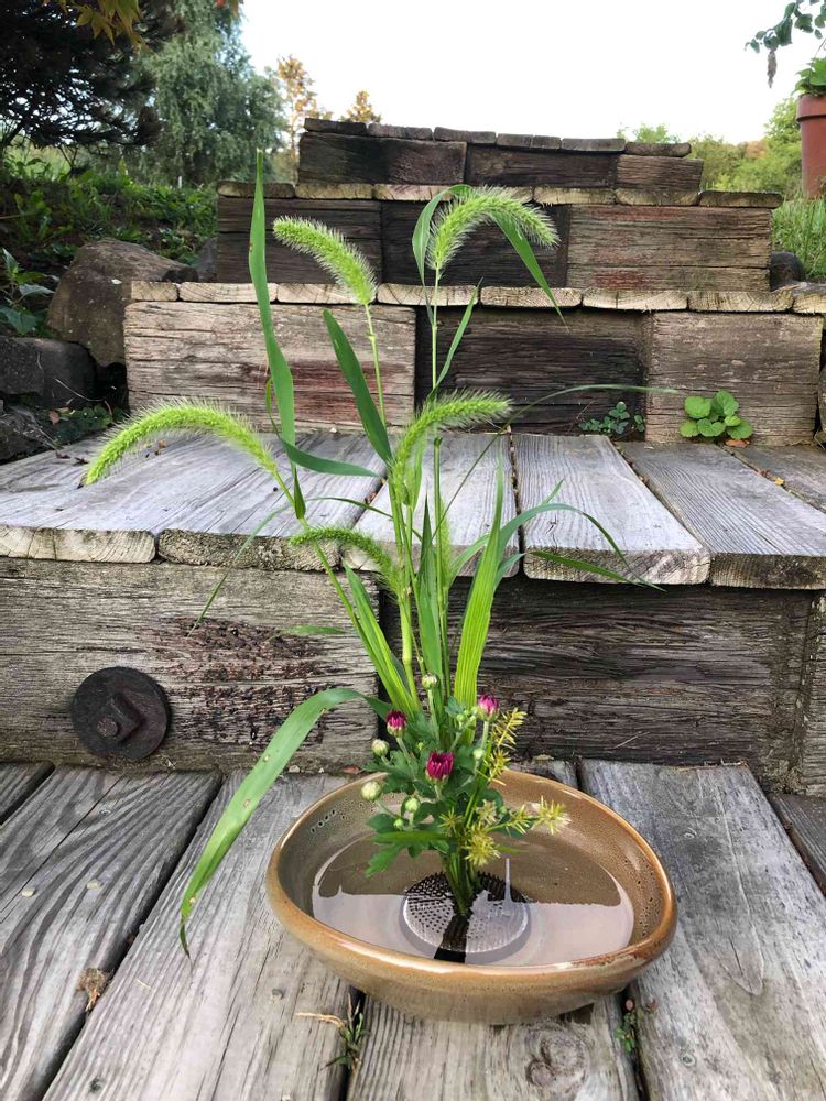 エノコログサを挿してから野菊を突っこんだり💦💦