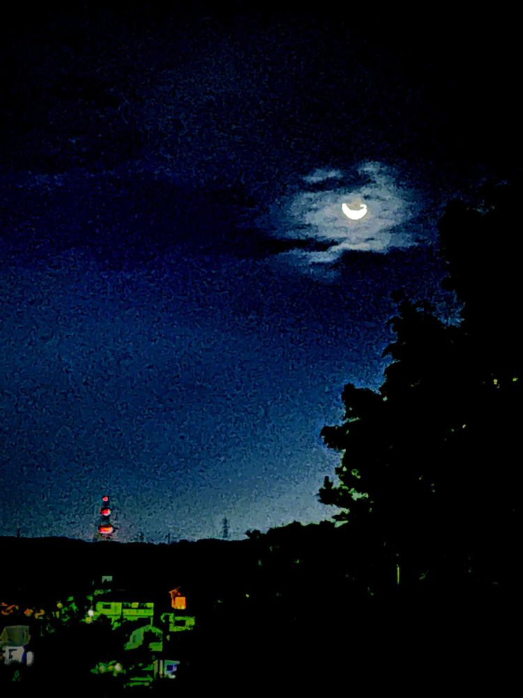 最初は月が出ていることに気が付きませんでしたが、予想外の位置に予想外の月がかかっていました^ ^
