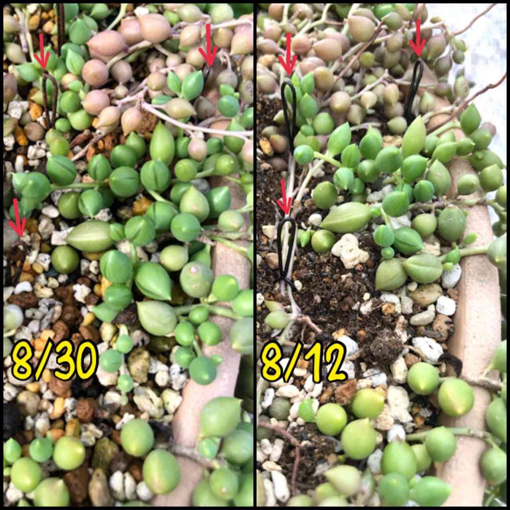 先日の投稿でご紹介した「多肉押さえピン📍」を使って育成中のピーチネックレス🍑