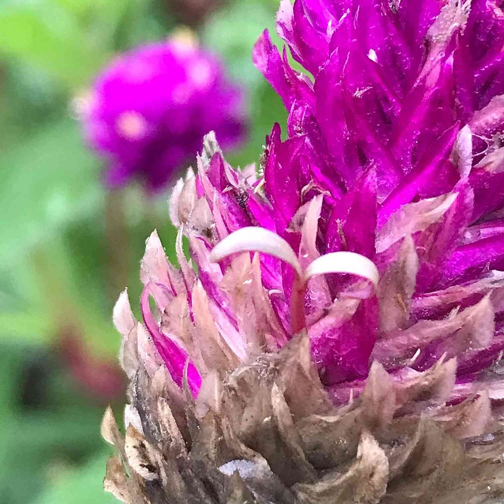 今までセンニチコウꕤバイカラーローズだけでしか確認できていませんでしたが、とうとう別のショッキングピンクのセンニチコウからも🌱が出ているのを発見‼︎