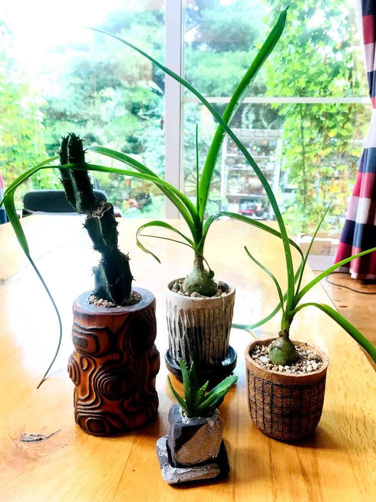 個性豊かなステキ鉢に、個性的なグリーンを植え替え。