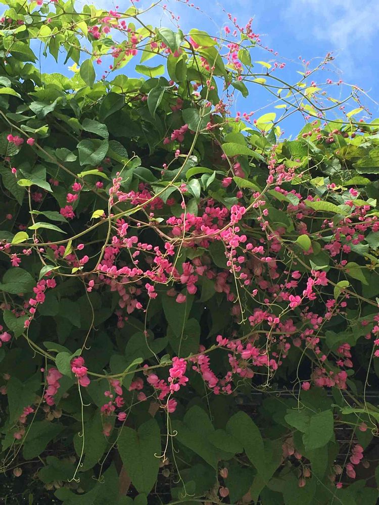 別名は他にコーラル バイン(珊瑚藤)、クィーン ネックレスなどメキシコ原産で沖縄では野生化してると。