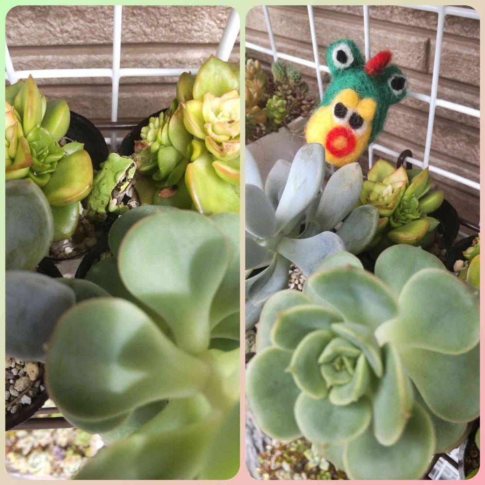Σ(゚∀゚ノ)ノキャー 久しぶりの🐸ジェームスさん🥰どちらも?カワイイ💕多肉さん無視🙇