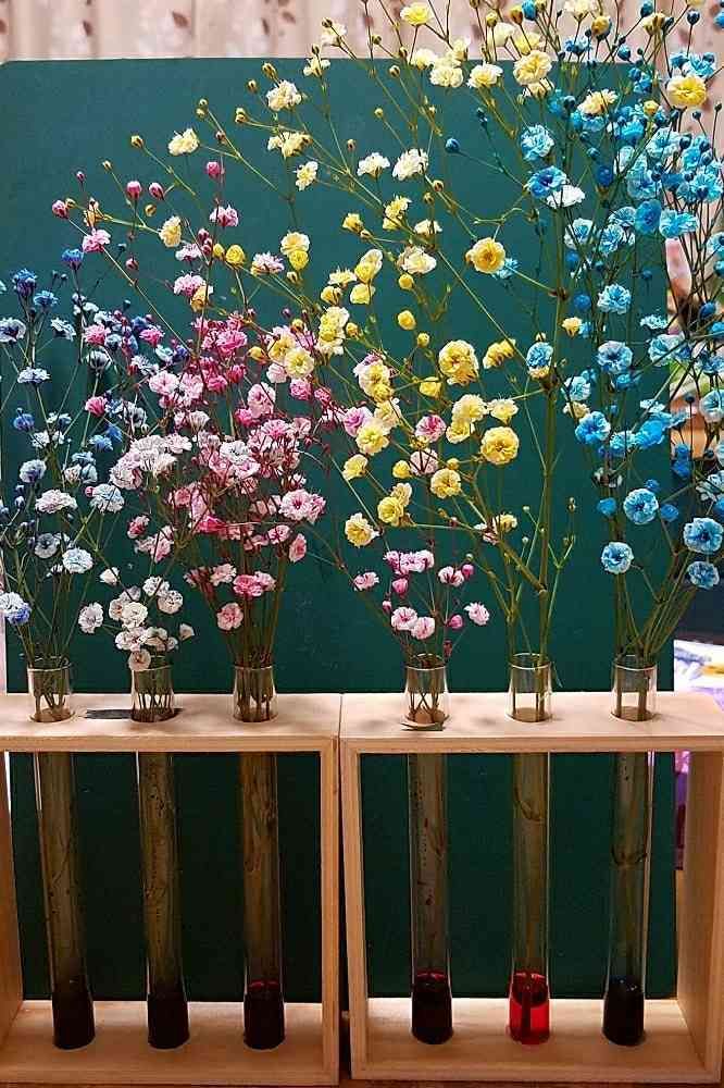 カスミソウを買ってきて直ぐは水に浸かってたから染料を吸い上げるのが遅かったけど水に浸けず1日経ったカスミソウは染料の吸い上げが半端なく速いです😂