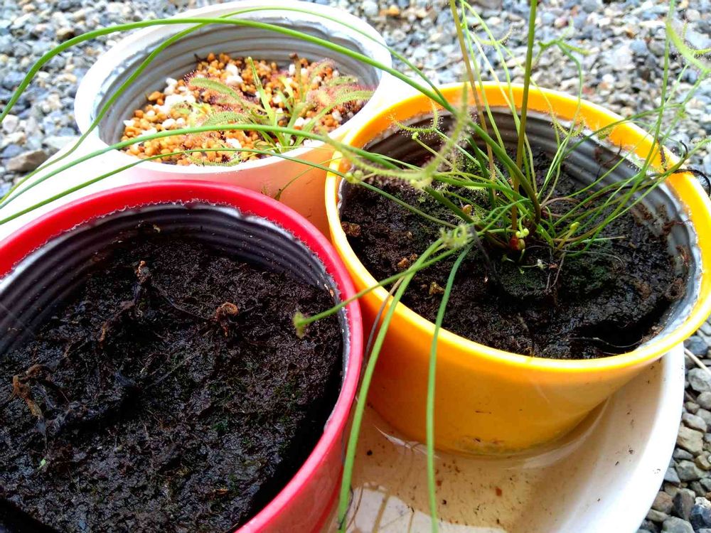 値引き品のモウセンゴケ達。ビナータさんは無事に復活しました。アデラエさんはダメでした。カペンシスさんは食虫植物の土に植え替えています。