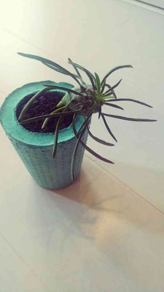 たぶん実生のユーフォルビアの式部をセメント鉢に。