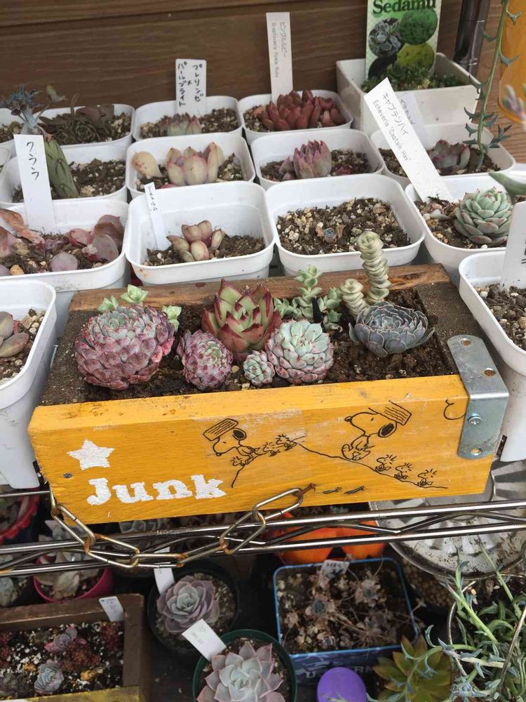 t.kaoriちゃんとこからお嫁に来た可愛いスヌーピー木箱を新しく寄せ植えし直したよ(๑•̀ㅂ•́)و✧