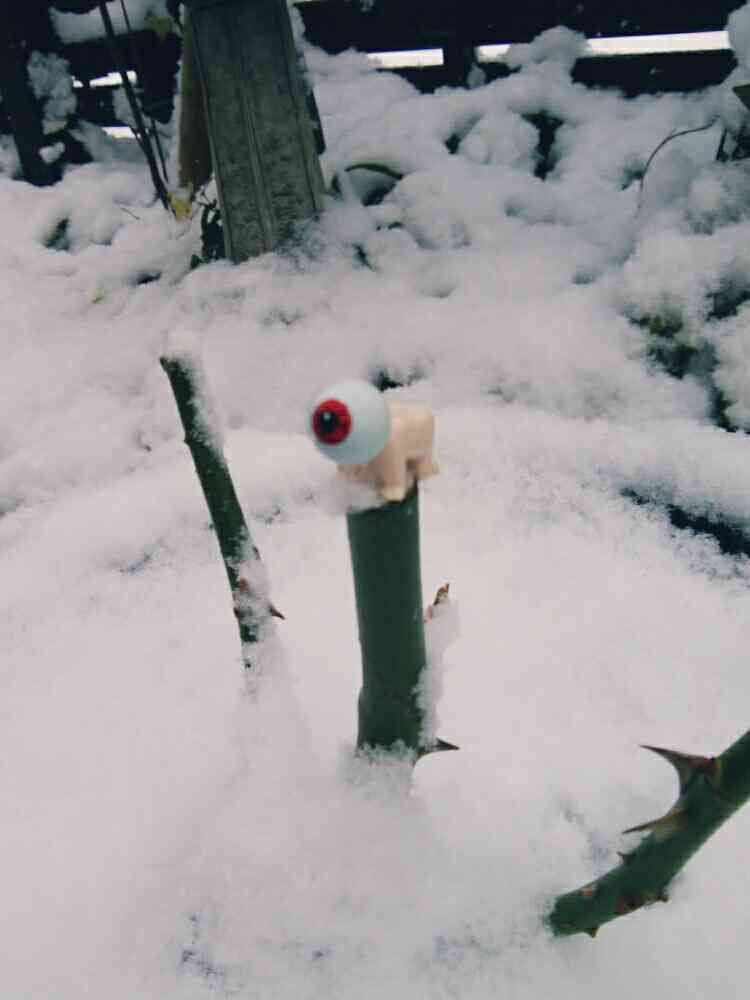 我が家のオヤジ様、初めての雪に驚いているようです😆