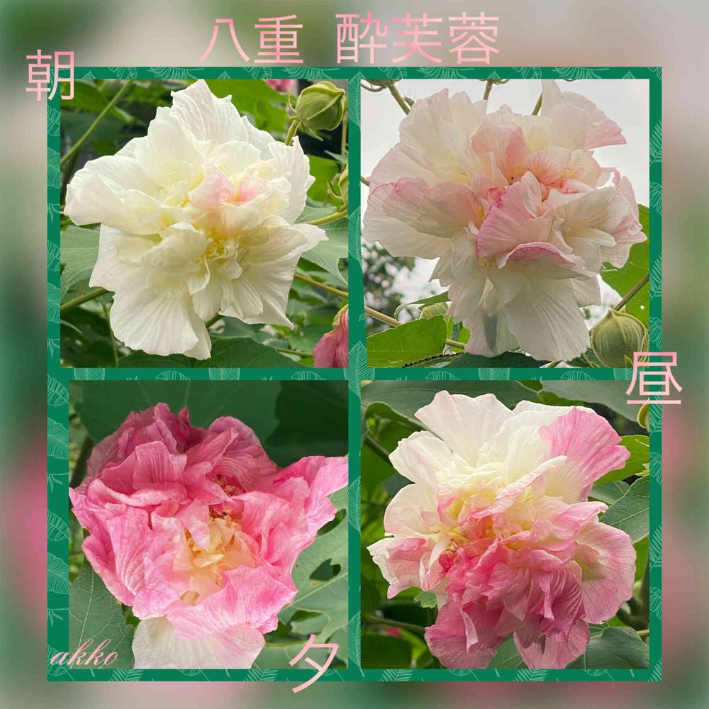 ひみつのアッコちゃんさんのお出かけ先,八重咲き酔芙蓉の色の変化,花色の変化の投稿画像
