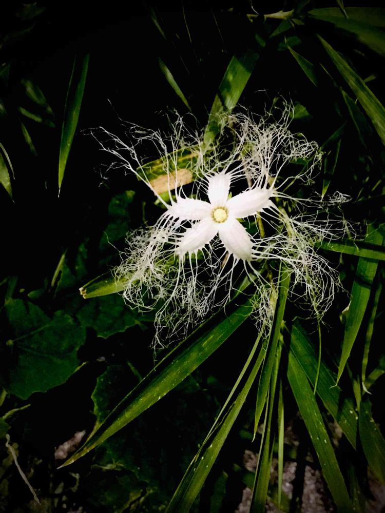 緑の小さな茂みにぽつんと白い花を咲かせてました!