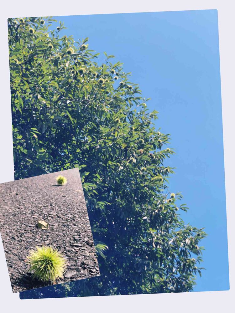 青空と栗の木🌳、秋の気配を感じますね🍂