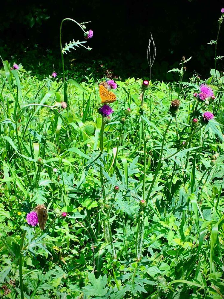 蝶々はミドリヒョウモンと、ジヤノメチョウが写っています😊 塩嶺峠のてっぺんの駐車場で撮りました😊
