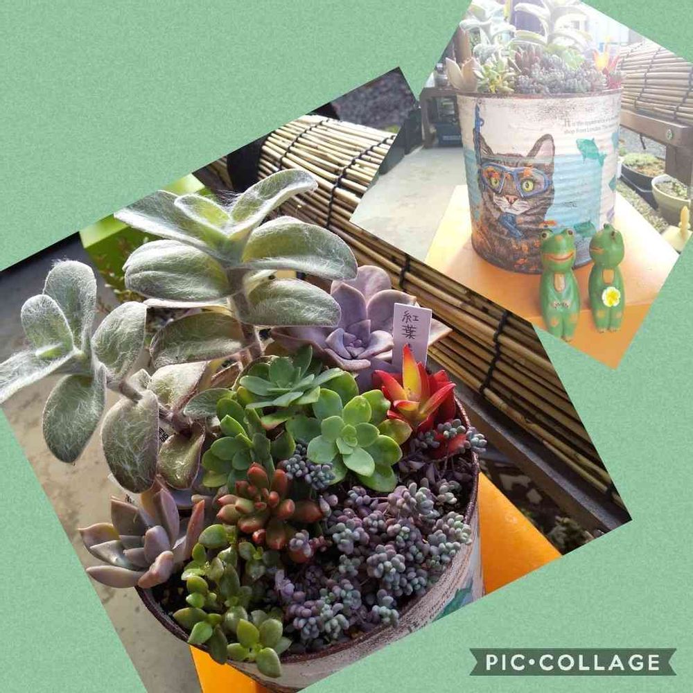 皆さんみたいな高級多肉じゃないんだけど、ちょっと色合いにこだわり、寄せ植えてみたよ♥
