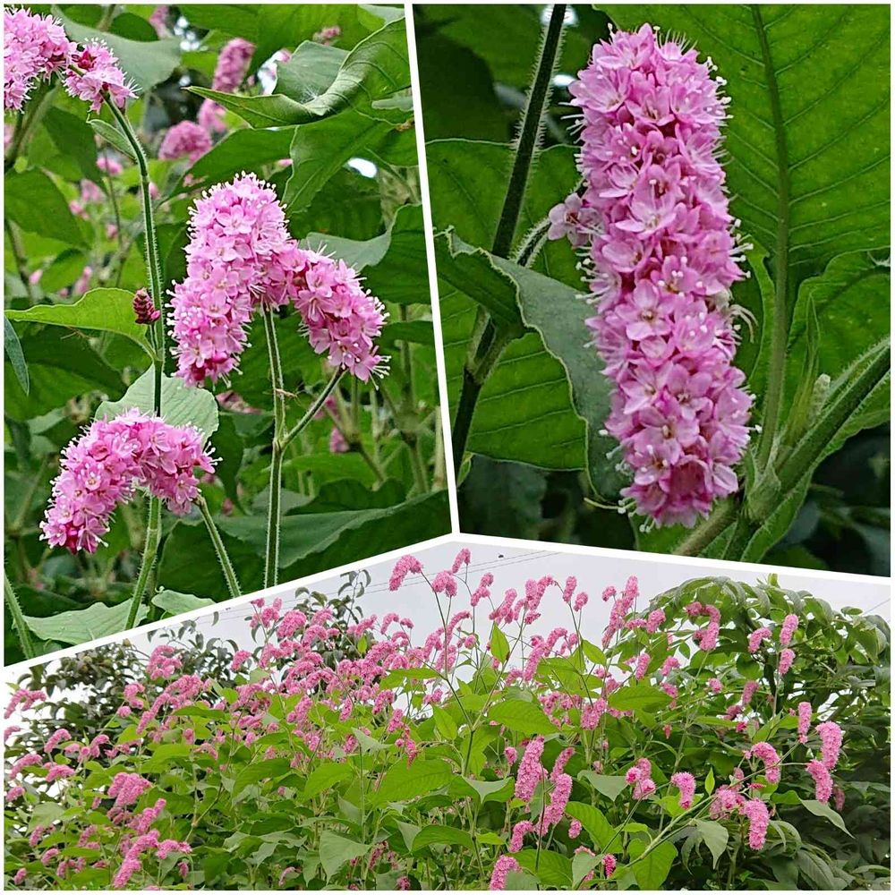 草丈2mくらいあって、イヌタデを超巨大化して色鮮やかにして垂らした感じのお花です😄