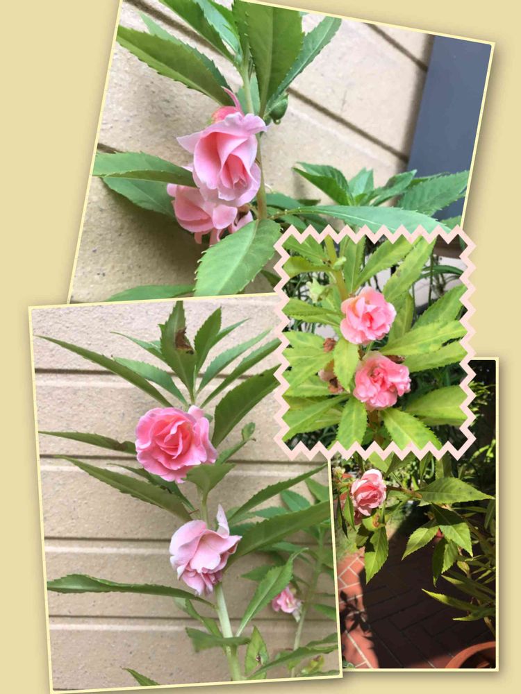 昔😅の鳳仙花って、もっとアッサリしてたよね確か、、。孫に「バラ?」って聞いたら笑われました😂花の事は、よく分からないおばあさん👵なもんで、、。色々と種類が豊富で覚えられません。