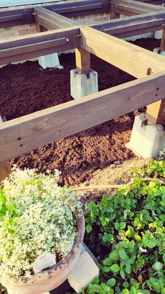ガーデンモスとバーク堆肥を混ぜたものをのせました。