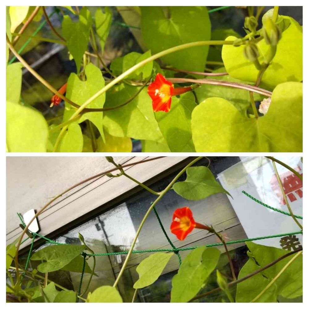 さん マルバルコウソウみたいです、朝顔植えたはずなのに?なんで?🤔団十郎はまだまだらしいです!(^.^)