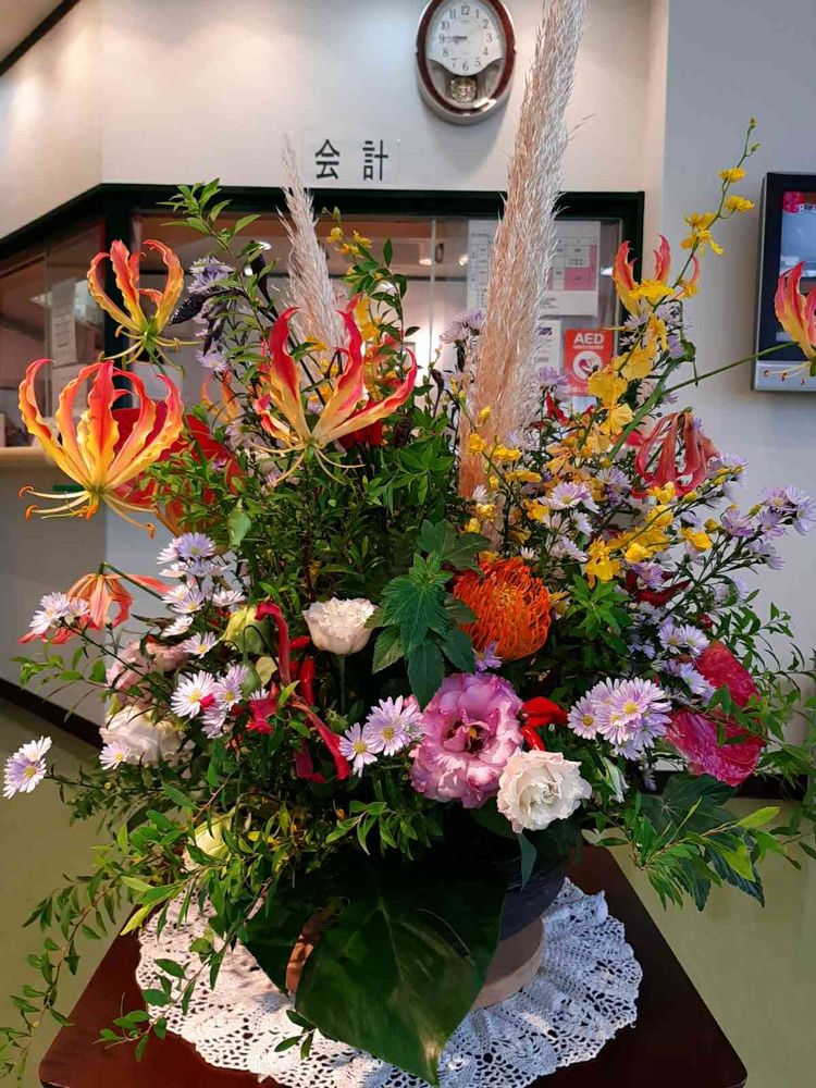 診療所🏥にとても豪華なお花のアレンジメントですか!凄いですね〜✨✨